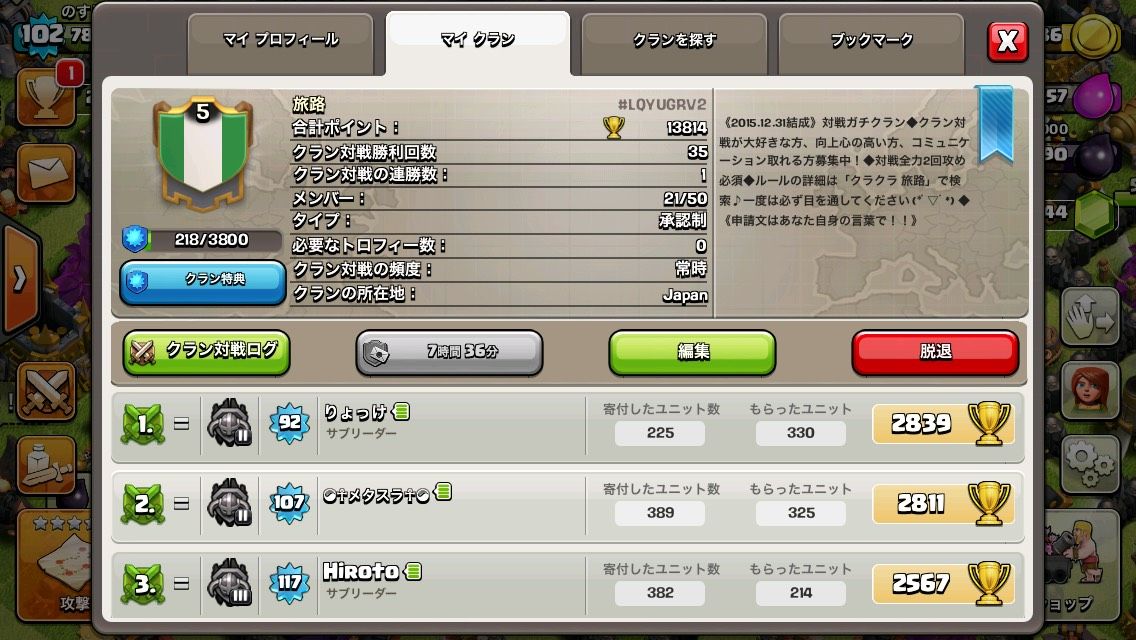 また、役職がまたついていないメンバーもクラン対戦の時に自発的に援軍寄付やチャットでの戦術相談などしていて、もう全員長老にしてあげたい!!(笑)
